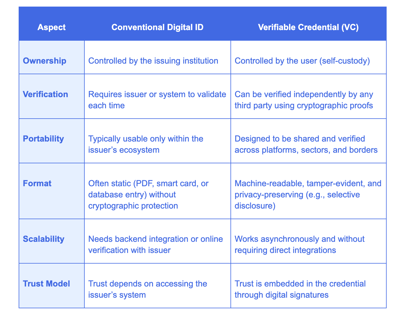 Verifiable credentials represent a return to something we once had user-held data that was portable, trusted, and easy to share. In the pre-digital era, people carried their own medical files to clinics and presented passbooks at banks. These physical records empowered individuals to manage and share information without needing systems to coordinate or connect (Matthan, 2024).