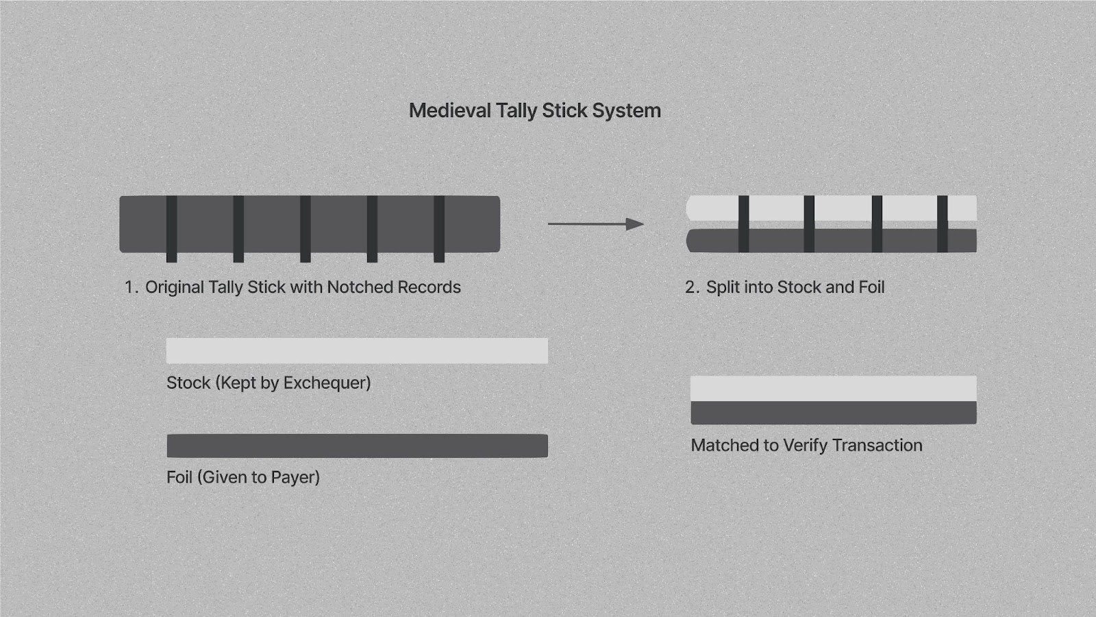 In medieval England, tally sticks split pieces of wood used to track debts were naturally tamper-evident and remained reliable for over six centuries. Ironically, a failed attempt to dispose of them by burning triggered the 1834 fire that destroyed the British Parliament, illustrating the vulnerabilities of centralized physical storage.